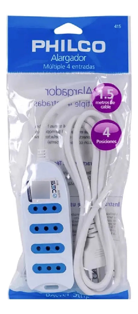 Alargador Philco 4 Tomas 1.5 Metros - Máxima Seguridad 1500W